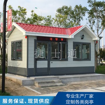 門衛(wèi)室崗?fù)?/a>可以按照尺寸進(jìn)行定制,一般都是肯定場地的情況而定,配置:整體鋼骨架焊接,屋頂鍍鋅板噴涂,外鋪彩色油氈瓦,塑鋼門窗、漏電保護(hù)器、PVC吊頂、復(fù)合木地板、照明燈、插座等。(如需空調(diào)、斷橋鋁門窗、隔間等特殊配置請聯(lián)系客服!)
