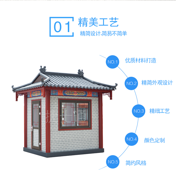 特有的造型,仿古的花紋,創(chuàng)意的窗飾,與古建筑恰到好處的融合,仿古的景區(qū)、仿古的公園、仿古的景點(diǎn),保安崗?fù)?、售票亭、休息亭均可采用此類風(fēng)格,而且在設(shè)計(jì)的時(shí)候,尺寸均可定制
