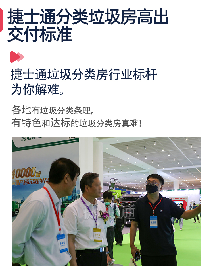 天津市垃圾房展會,北京市垃圾房展會都會出現(xiàn)捷士通的身影,參加垃圾房展會,都是有不同的產(chǎn)品展示,在展會進行講解,交談,技術(shù)交流等活動!