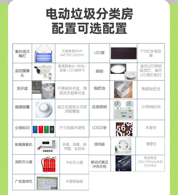 類 別:垃圾分類房 配 置:管理間,投放區(qū)、儲存間等 尺 寸:可定制尺寸 材 質(zhì):金屬雕花板 電 話:15822882616